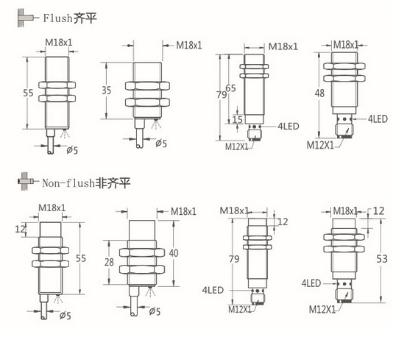 Thread size / 螺紋尺寸: M18 屏蔽式 / M18 非屏蔽式