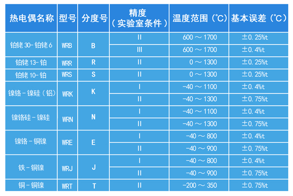 熱電偶允差: JJG351-96